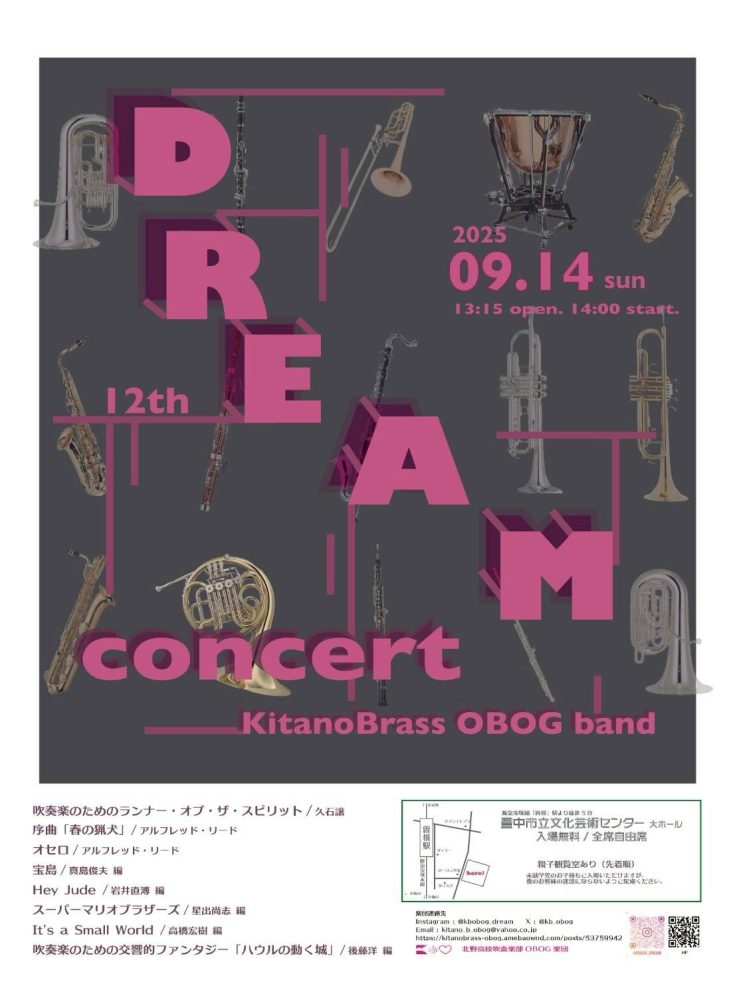 | イベント名 | 北野高校吹奏楽部OBOG楽団 第12回Dream Concert |